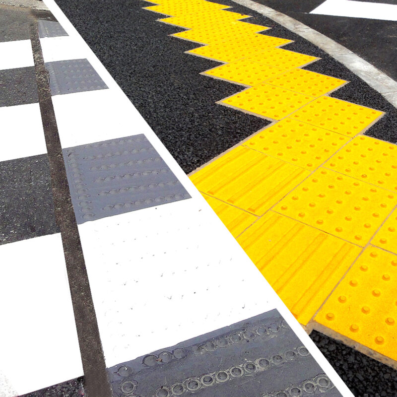 視覚障がい者が安心・安全に歩行できるように、位置と方向を誘導するものです。